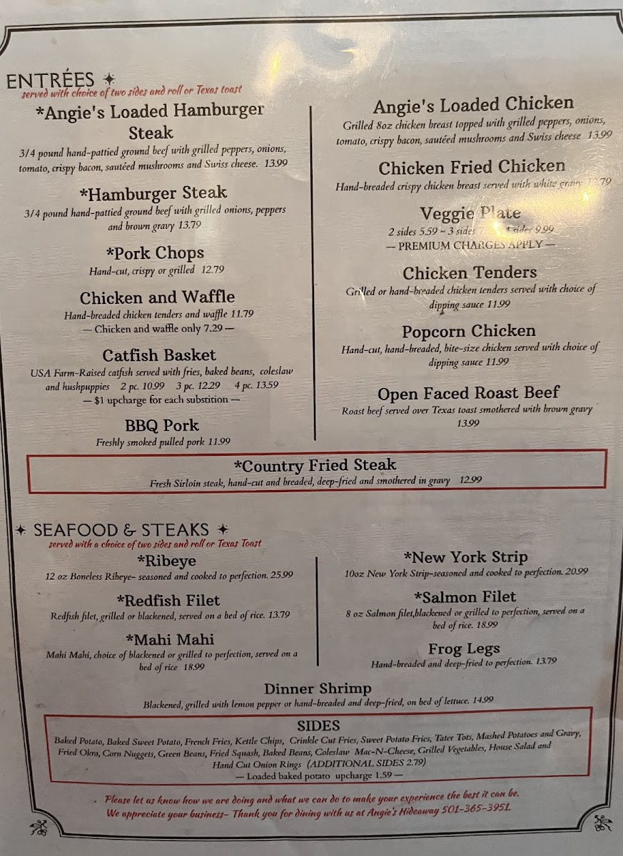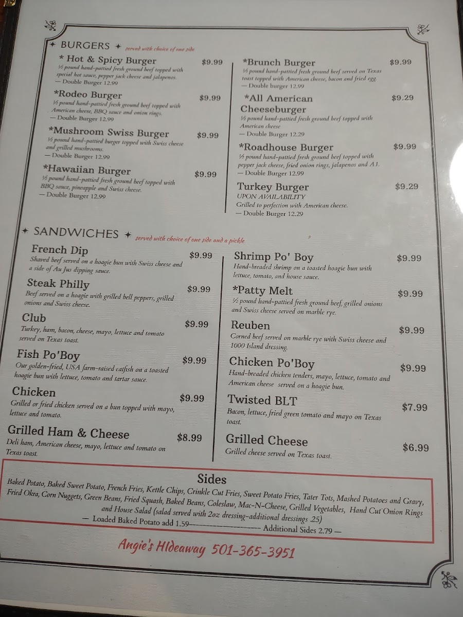 Welcome to Angie's Hideaway, a culinary gem located at 201 Bobbie Jean Ln, Heber Springs, Arkansas. This inviting restaurant is perfect for food enthusiasts seeking a great meal in a warm atmosphere. Diners rave about the extensive menu that caters to diverse tastes, ensuring that everyone finds something delightful.